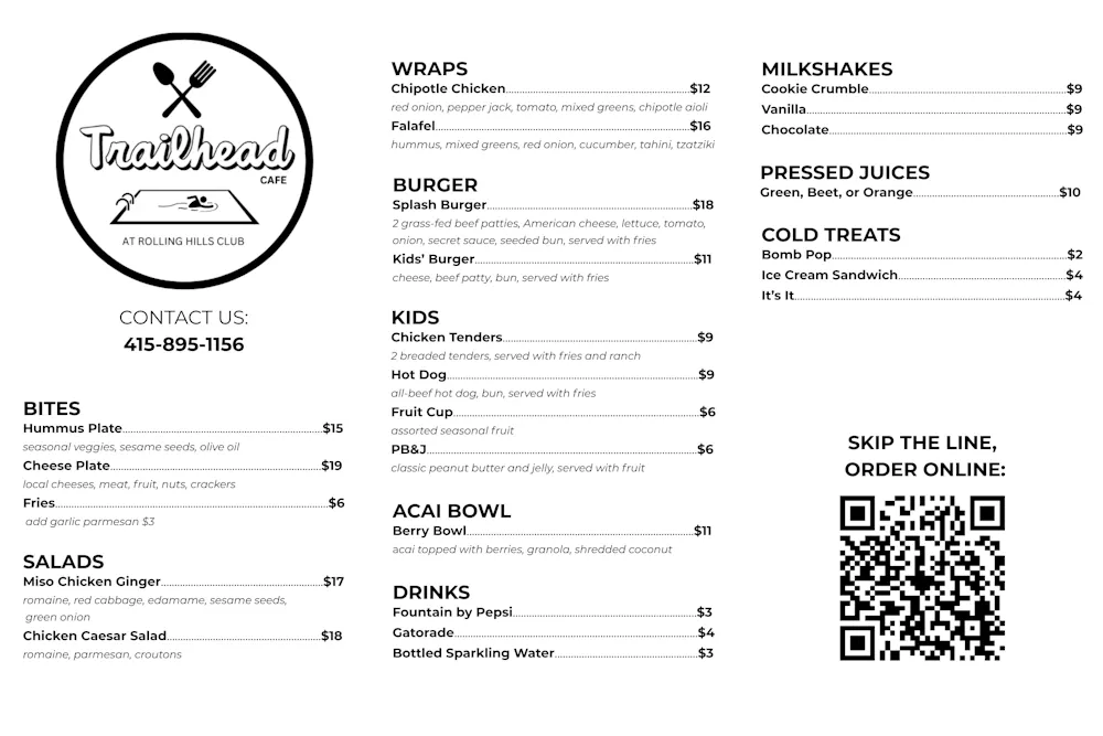 CALL US TO ORDER 415-895-1156 or Order by Bay Club at Rolling Hills - Menu